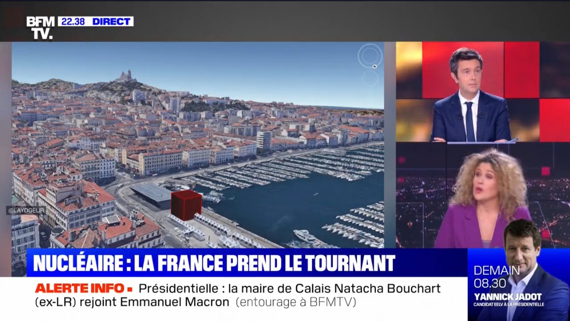 À force de partages sur les réseaux sociaux, le montage circule beaucoup, jusqu’à être repris à l’antenne de BFMTV en février 2022. « Regardez cette simulation : ce cube, c’est le volume total qu’on a produit de plus dangereux en matière de déchets radioactifs sur les 60 dernières années, et là c’est le port de Marseille que vous voyez, explique la journaliste à l’antenne. Donc en fait, le volume, il n’est pas colossal. »